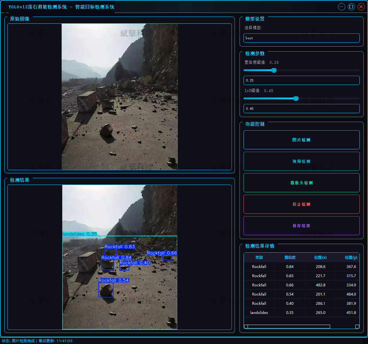 图片检测:支持JPG/JPEG/PNG/BMP格式图片的落石滑坡检测