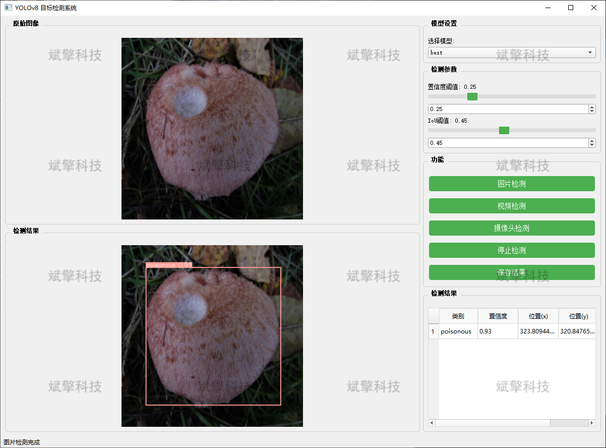 基于YOLOv8深度学习的蘑菇毒性检测系统(YOLOv8+YOLO数据集+UI界面+Python项目源码+模型)