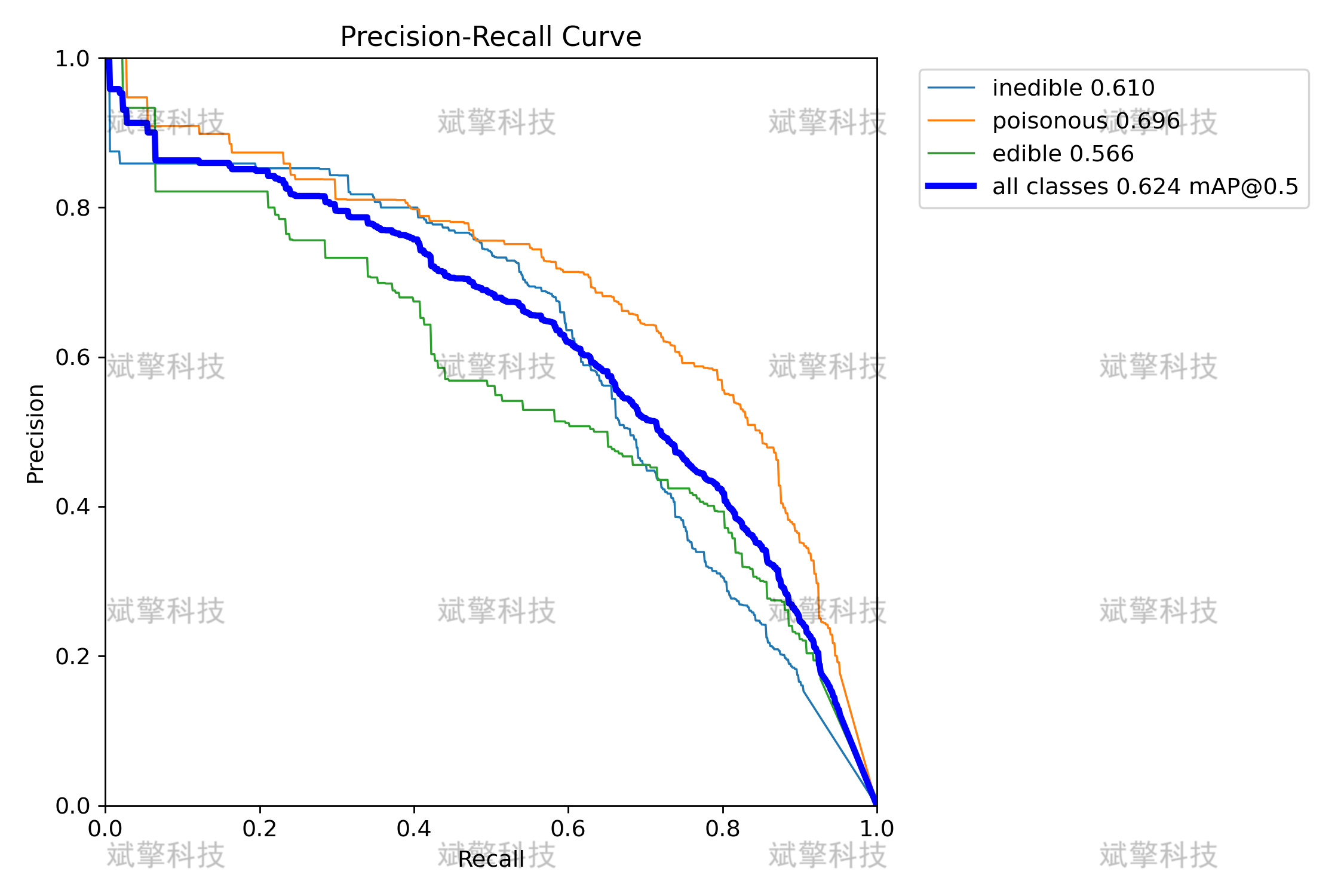 该系统旨在通过计算机视觉技术,实现对蘑菇图像的实时、准确分类与毒性预警。系统主要功能涵盖图片检测、视频文件检测以及实时摄像头检测,能够将蘑菇划分为可食用(edible)、有毒(poisonous)和不可食用(inedible)三个类别。实验结果表明,该模型在测试集上具有良好的识别精度与鲁棒性,能够为用户提供便捷的野外辅助鉴别手段,具有一定的社会应用价值与科普意义。