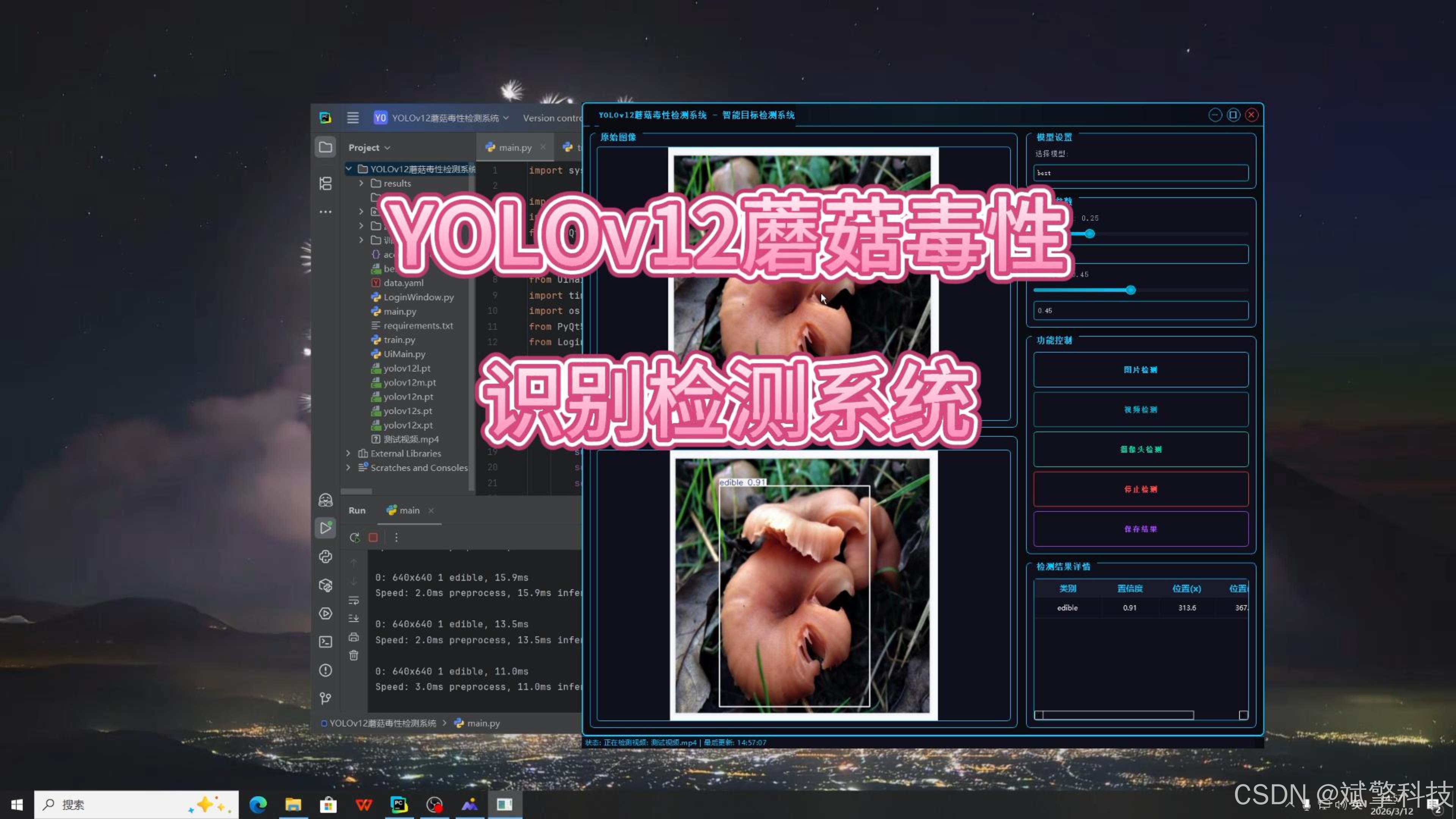 本项目基于 YOLOv12 深度学习目标检测算法,构建了一套高精度、高实时性的蘑菇毒性检测系统,旨在解决野生蘑菇误食导致的中毒风险问题。系统针对蘑菇的毒性分类需求,将检测目标划分为不可食用(inedible)、有毒(poisonous)、可食用(edible)三类,提供图片静态检测、视频动态检测、摄像头实时检测三大核心功能。
