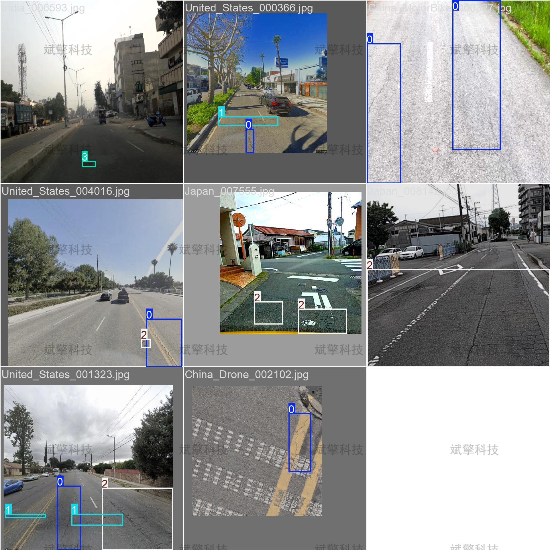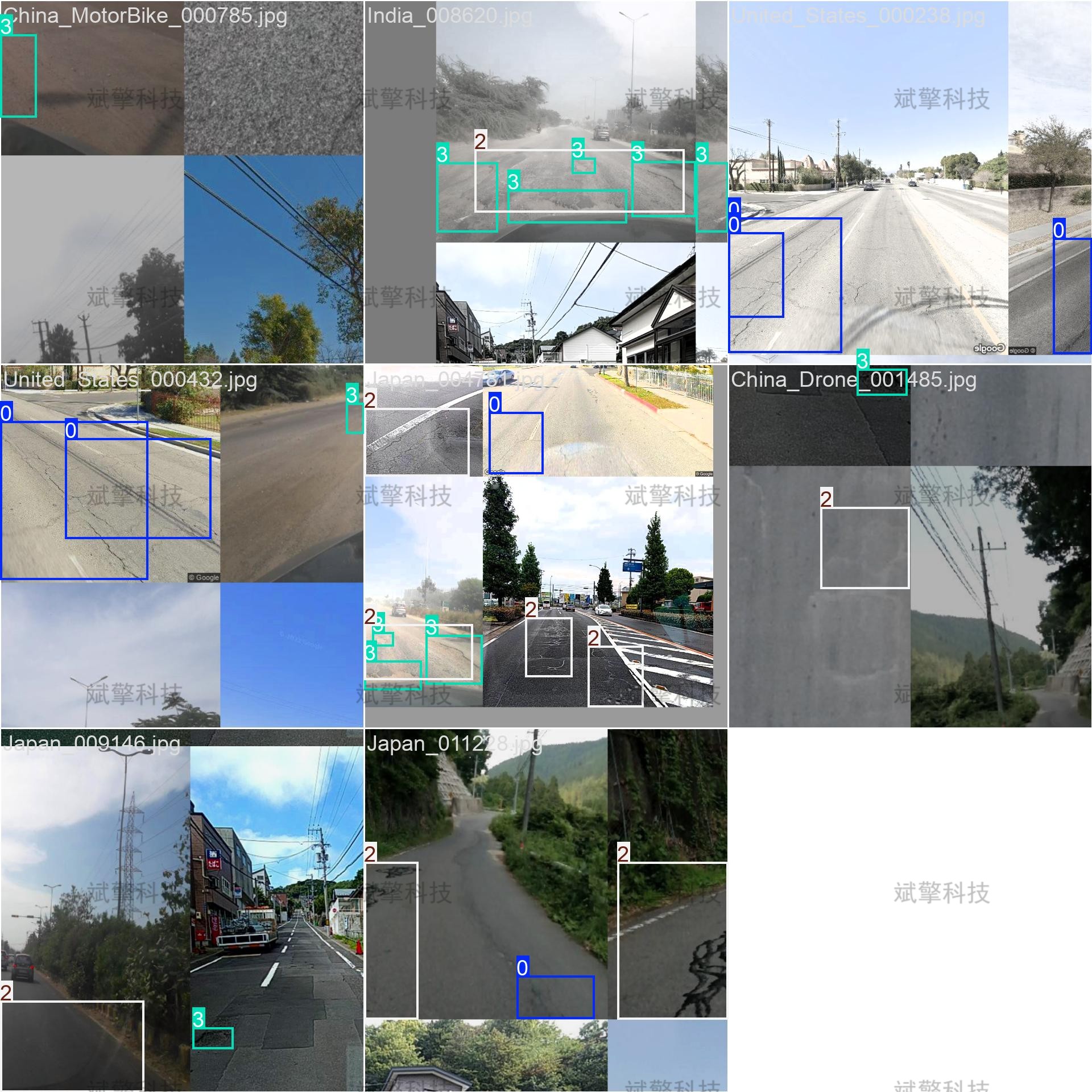 模型共可识别4种典型的道路裂缝类型,具体类别及其对应含义如下:-