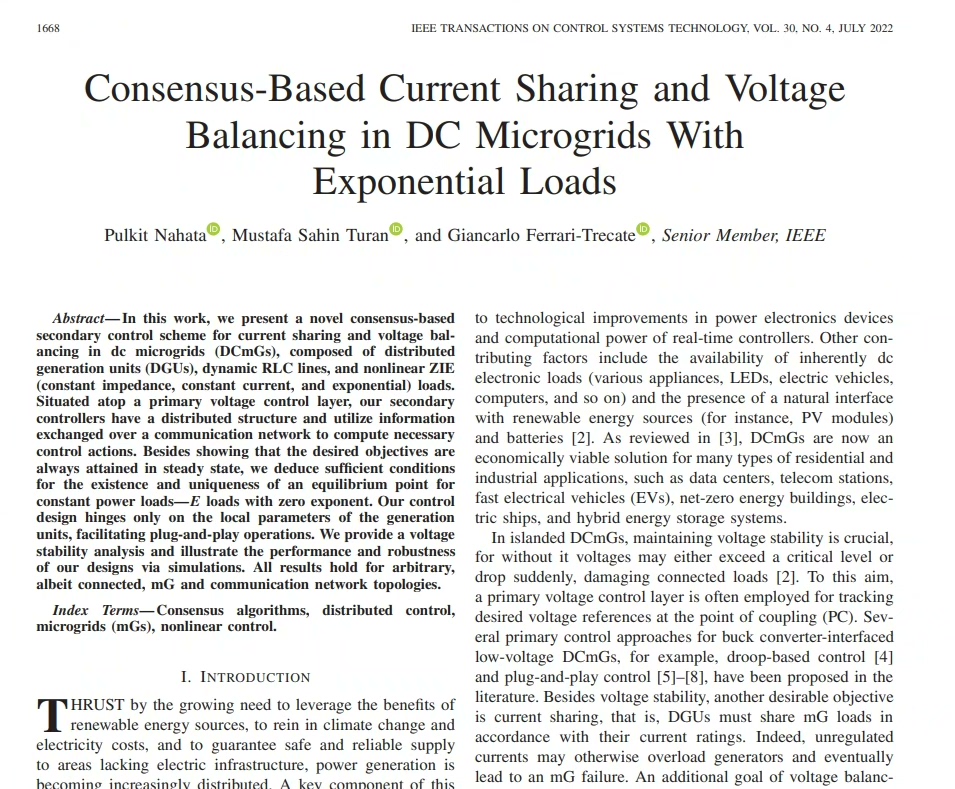除了实现均流均压,这个方案还有一个亮点,就是推导了恒功率负载(也就是零指数负载)平衡点存在和唯一的充分条件。这一步非常关键,因为只有确定了平衡点的相关条件,才能保证系统在各种情况下都能稳定运行。
