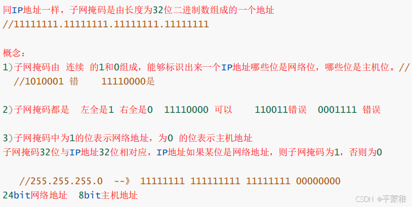 实例:1 ) 子网掩码由连续的 1 和 0 组成2 ) 子网掩码都是 左全是 1 右全是 0