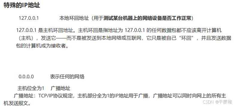 网络地址应用:如何判断两个 IP地址是否是相同网段?如果两个 IP 地址,网络地址相同,就说明在同一个网段网络地址相同的话,就证明是相同网段 通信 --- 通过交换机(工作在数据链路层) 不通过网关网络地址不同的话,就证明不是相同网段 通信 --- 需要通过网关(路由器:工作在网络层)网关 : 核心作用是 “ 跨网络转发数据 ” ,是不同网络(如局域网和互联网)之间的出入口 当访问另一个 网络中的主机时,就要通过网关 ( 通常是路由器 )