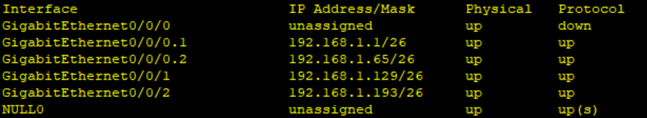 [R1-GigabitEthernet0/0/0.1]ip address 192.168.1.1 26