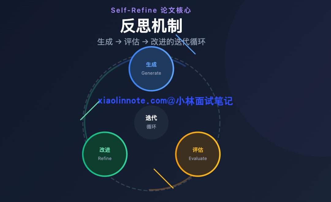 你可以用「草稿 -> 批阅 -> 修改」来类比:学生交出草稿(生成),老师批阅指出问题(评估),学生拿着批注修改(改进),改完的稿子再经过老师审阅,直到通过为止。