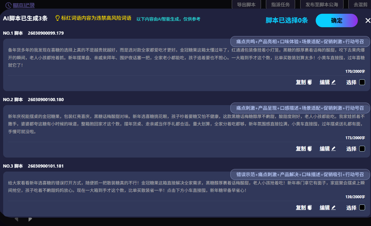 AI可自动拆分可跑量分镜,根据不同平台调性,组合成适配抖音、快手、视频号的差异化内容,提升投流效果。同时,其效率优势突出,1小时可批量生成50+条宣传内容,能帮助商家节省3名剪辑师人力成本,单条素材消耗较人工降低60%以上。