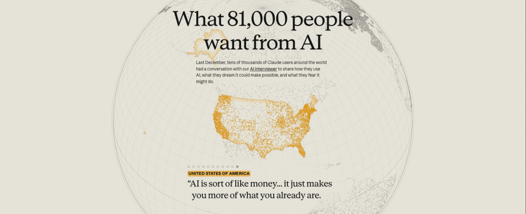 前几天,Anthropic (Claude AI) 发了一份用户调研报告:《What 81,000 people want from AI》。