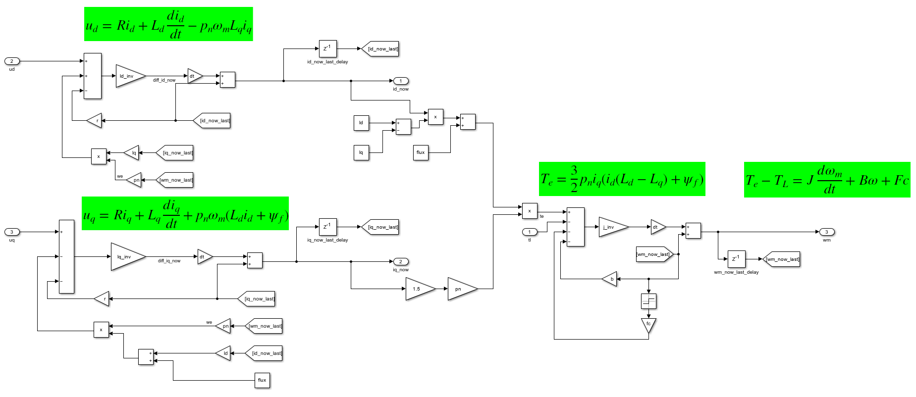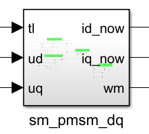 sm_pmsm_dq 中内部做了三件事:电流计算、电磁转矩计算、机械运动方程。