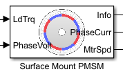 下图为 Simulink 自带的 Surace Mount PMSM 电机模型: