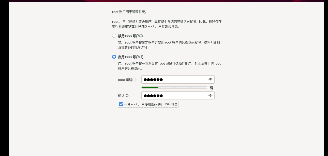 选择允许root用户使用密码进行登录