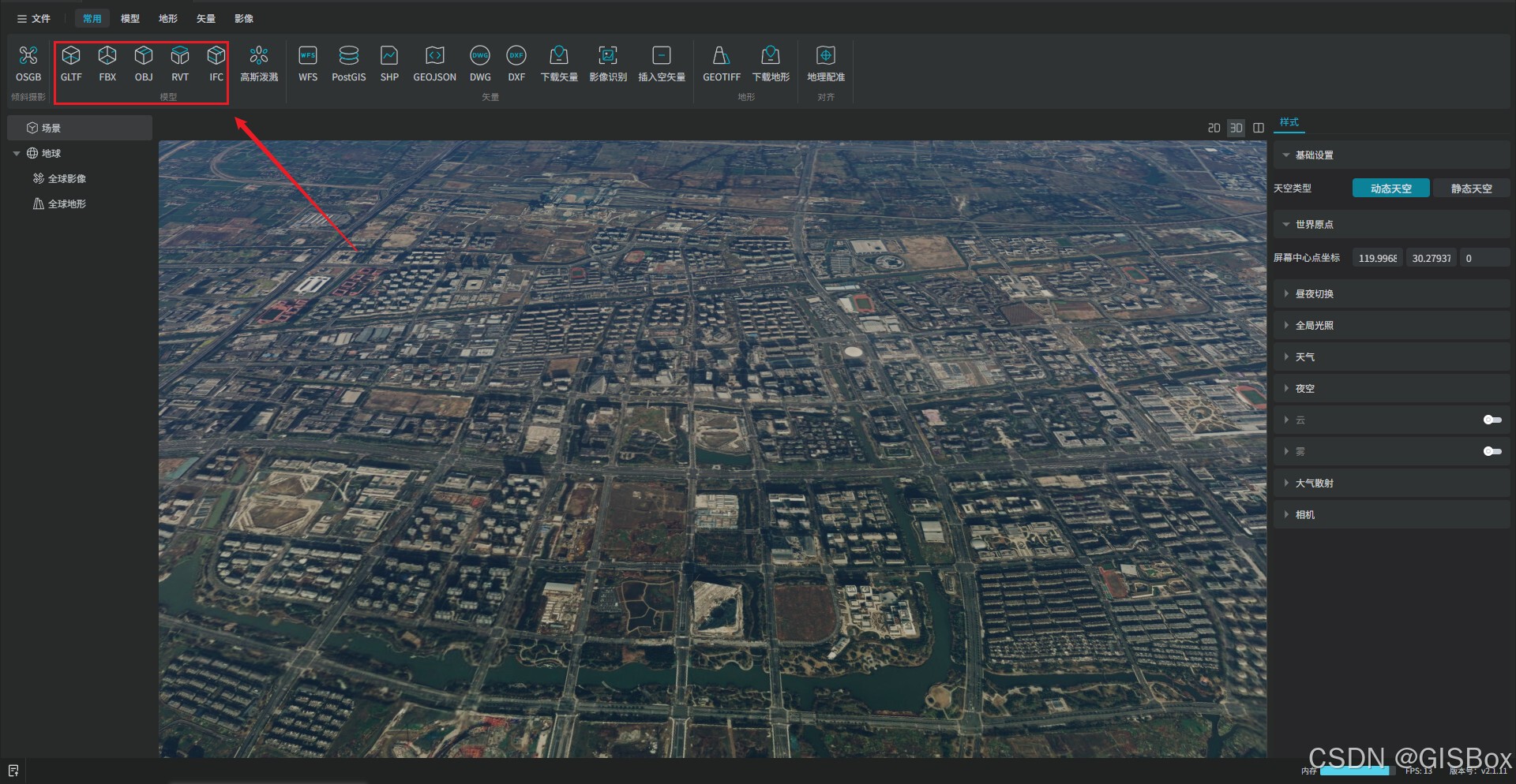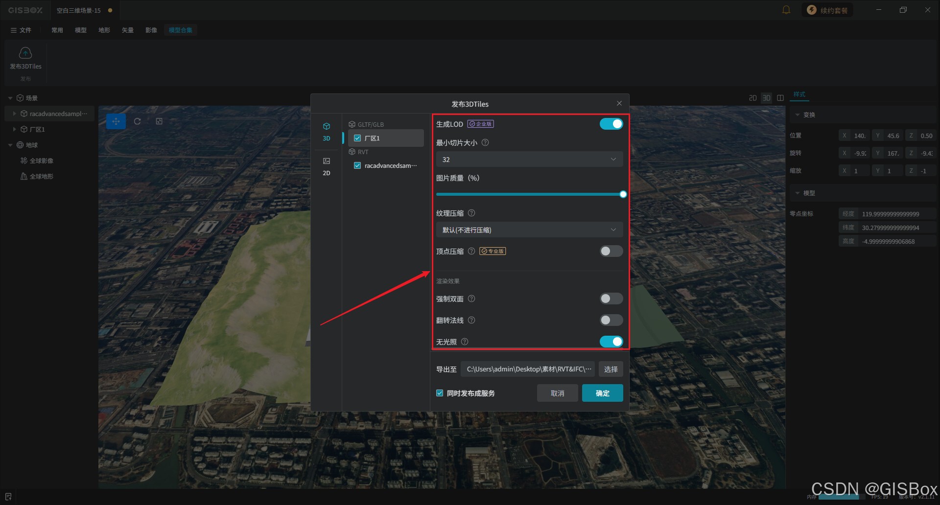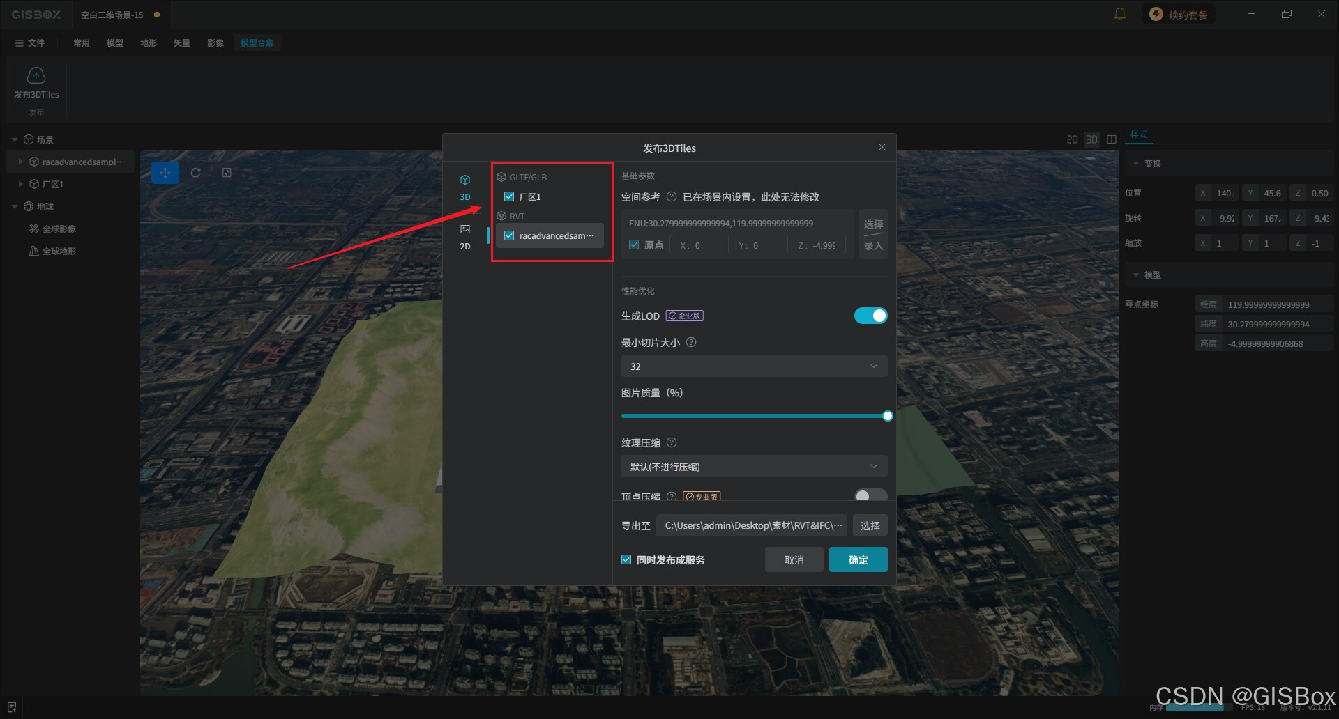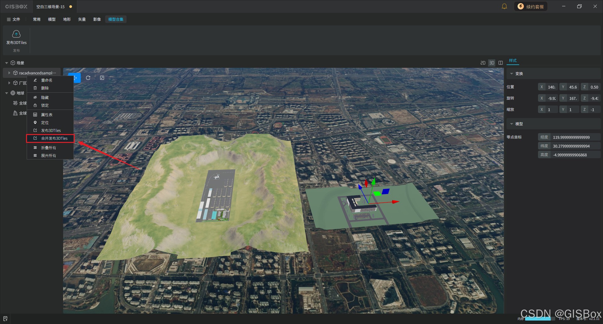 在GISBox软件的场景编辑板块中新增了多个模型合并导出的功能,该功能能把零散模型整合成统一数据,大幅提升加载与渲染流畅度,减少文件管理麻烦;同时方便跨平台交付和项目归档,还能优化数据体量,让三维场景浏览、分析和运维更高效稳定。那本文将教大家如何将多个模型合并导出?