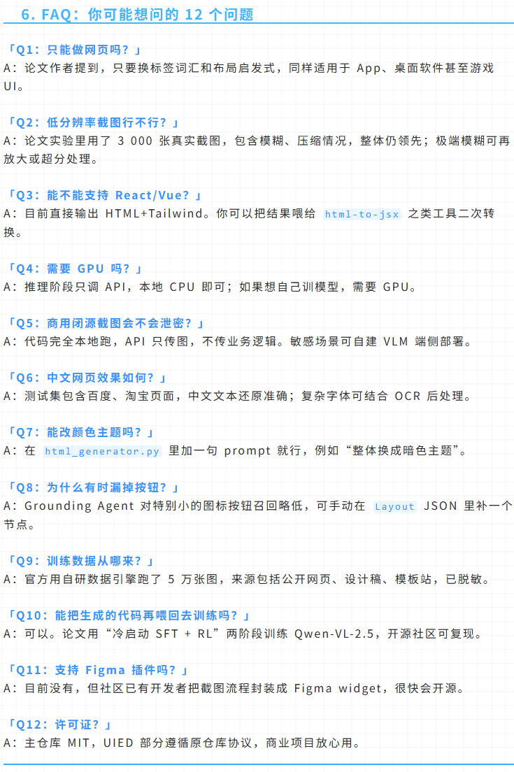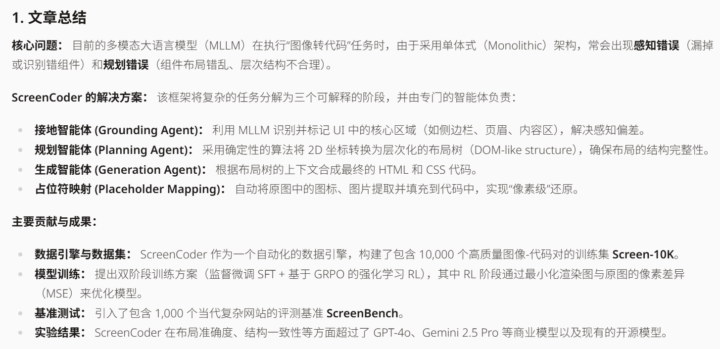 🧠 EfficientUICoder、ScreenCoder 更注重 性能优化和多模态代理架构。