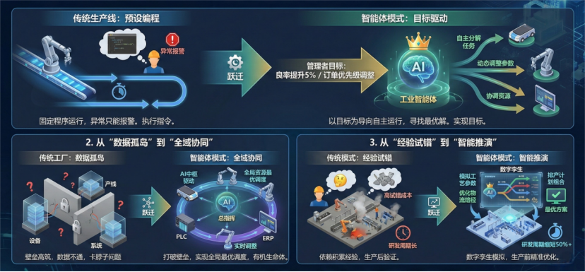 工业智能体的出现,彻底重构了生产线的底层逻辑,从三个维度实现跃迁: