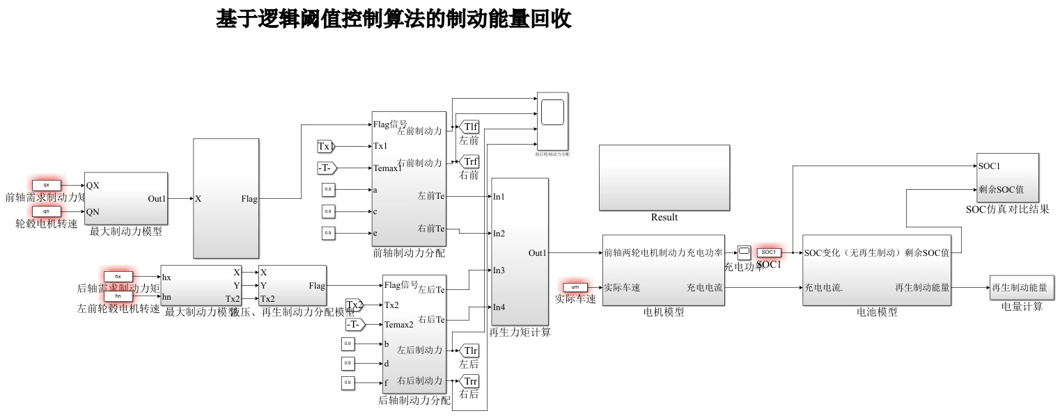 在 Simulink 模型搭建时,就可以基于这样的逻辑,通过条件判断模块(如 Switch 模块)来实现这种逻辑门限控制。比如将车速信号接入 Switch 模块的控制端口,设定门限值,当车速高于门限值时,输出再生制动控制信号到相应的执行模块。