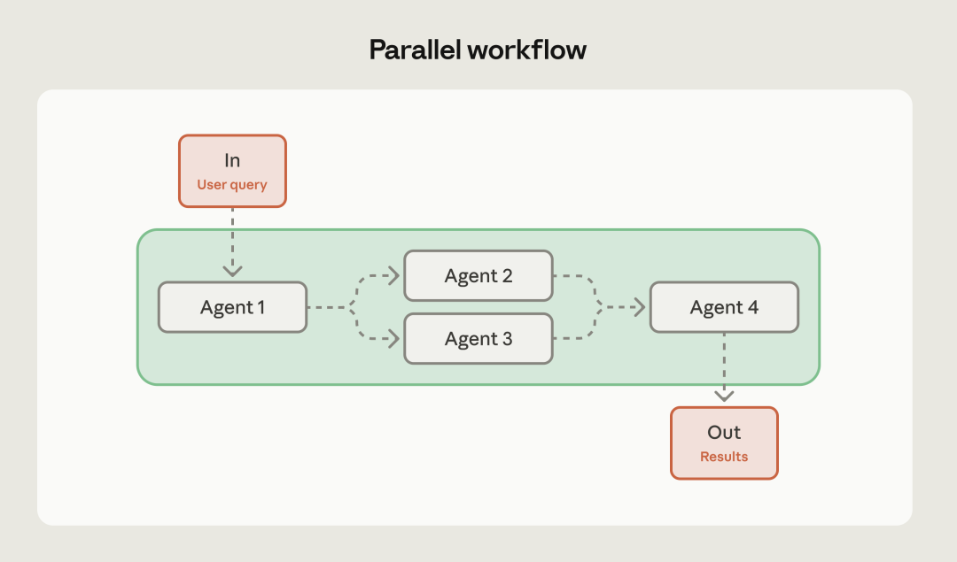 并行工作流将独立任务分配给多个 Agent 同时执行。不需要等一个 Agent 完成后才启动下一个,而是同时运行多个 Agent 并合并结果。
