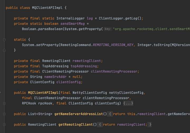 举个例子,在RocketMQ中有一个类MQClientAPIImpl