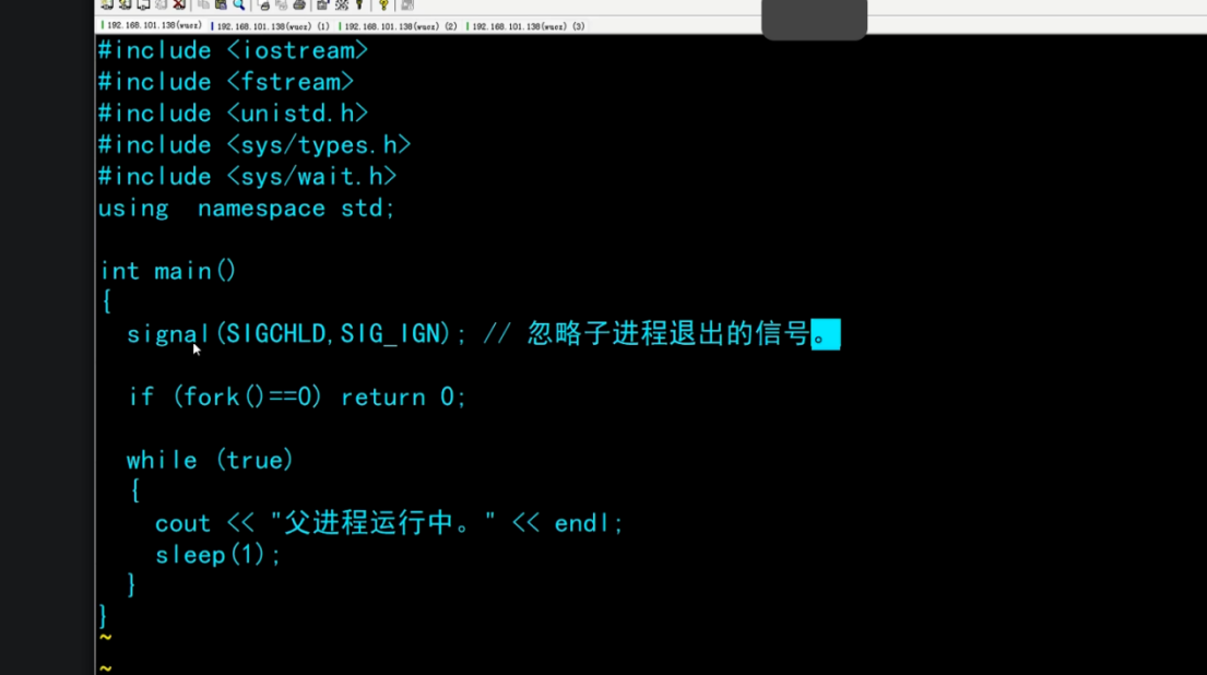 3)如果父进程很忙,可以捕获SIGCHLD信号,在信号处理函数中调用wait()/waitpid()。