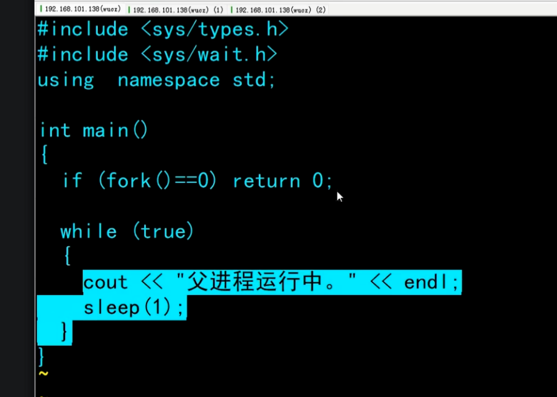// 2. 阻塞等待子进程退出:wait(&sts) 会暂停父进程,直到任意子进程结束