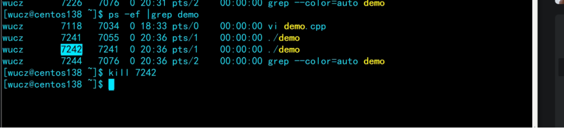 再次运行程序,查看进程编号,用-9杀死程序: