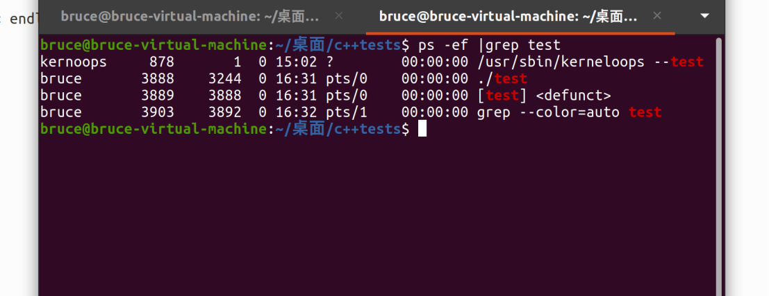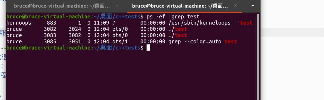 编译运行,查看进程,并kill子进程: