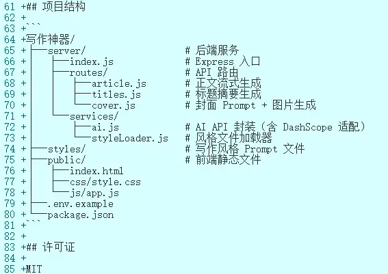 核心的内容生成环节,它做了一个路由层 (routes/)。article.js负责处理正文生成,可以流式输出;titles.js负责批量生成标题和摘要;cover.js负责封面生成,提供Prompt生成+图片下载的功能。