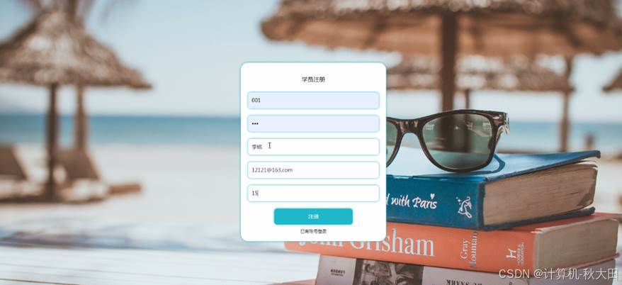 学员登录、学员注册,通过填写学号、密码、姓名、邮箱、手机等信息进行注册,登录,如图4-12所示。