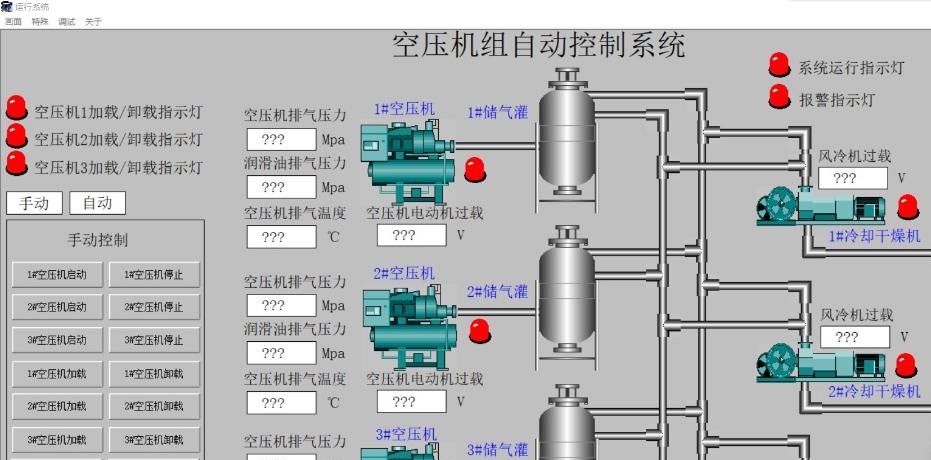 - 三路储气罐分别自动控制,每一路都能自己根据压力启停空压机