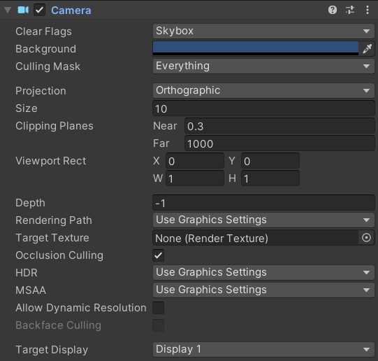 调整Camera 的Size,默认为5 ,我们把size调整到10 。(记得另外两个场景也要调整)