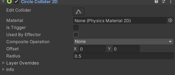 可以通过Box Collider 2D设置物体的形状,一般会与你的Sprite Renderer自适应 所以我们不用修改。