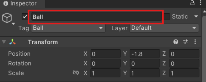 GameObject.name 就会指向 Ball(这里是指的名字下图)