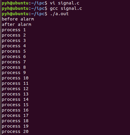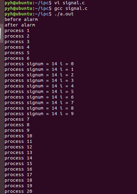 printf("process signum = %d i = %d\n",signum,i);