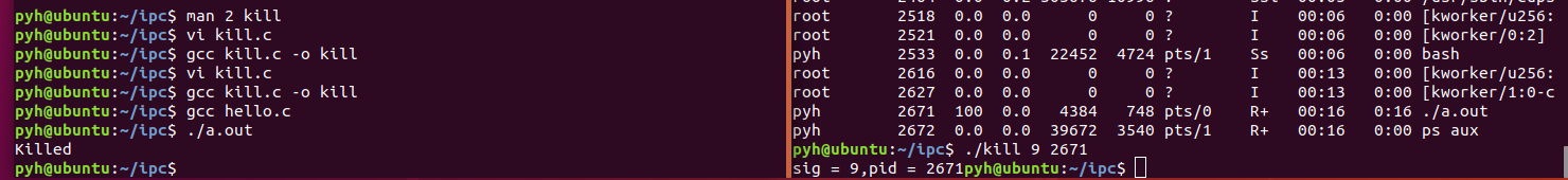 kill(pid,sig);