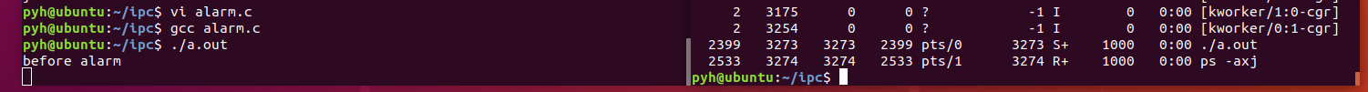 printf("before alarm\n");