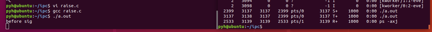 raise: 发信号给自己 == kill(getpid(), sig)