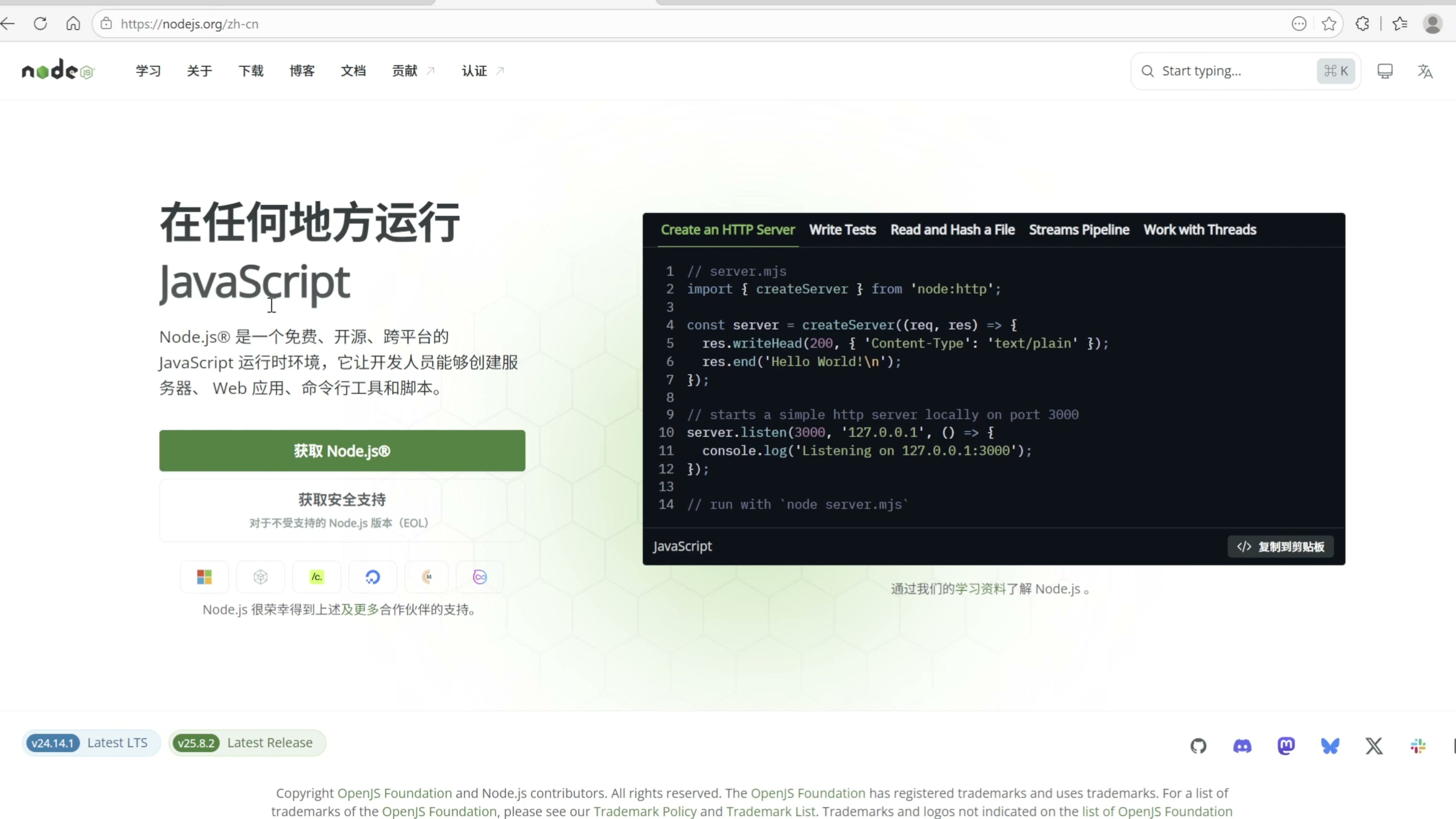 这里我们把他安装并且试用一下。第一步首先需要先在电脑上安装nodejs,没有的话可以来到nodejs的官网下载并且安装。