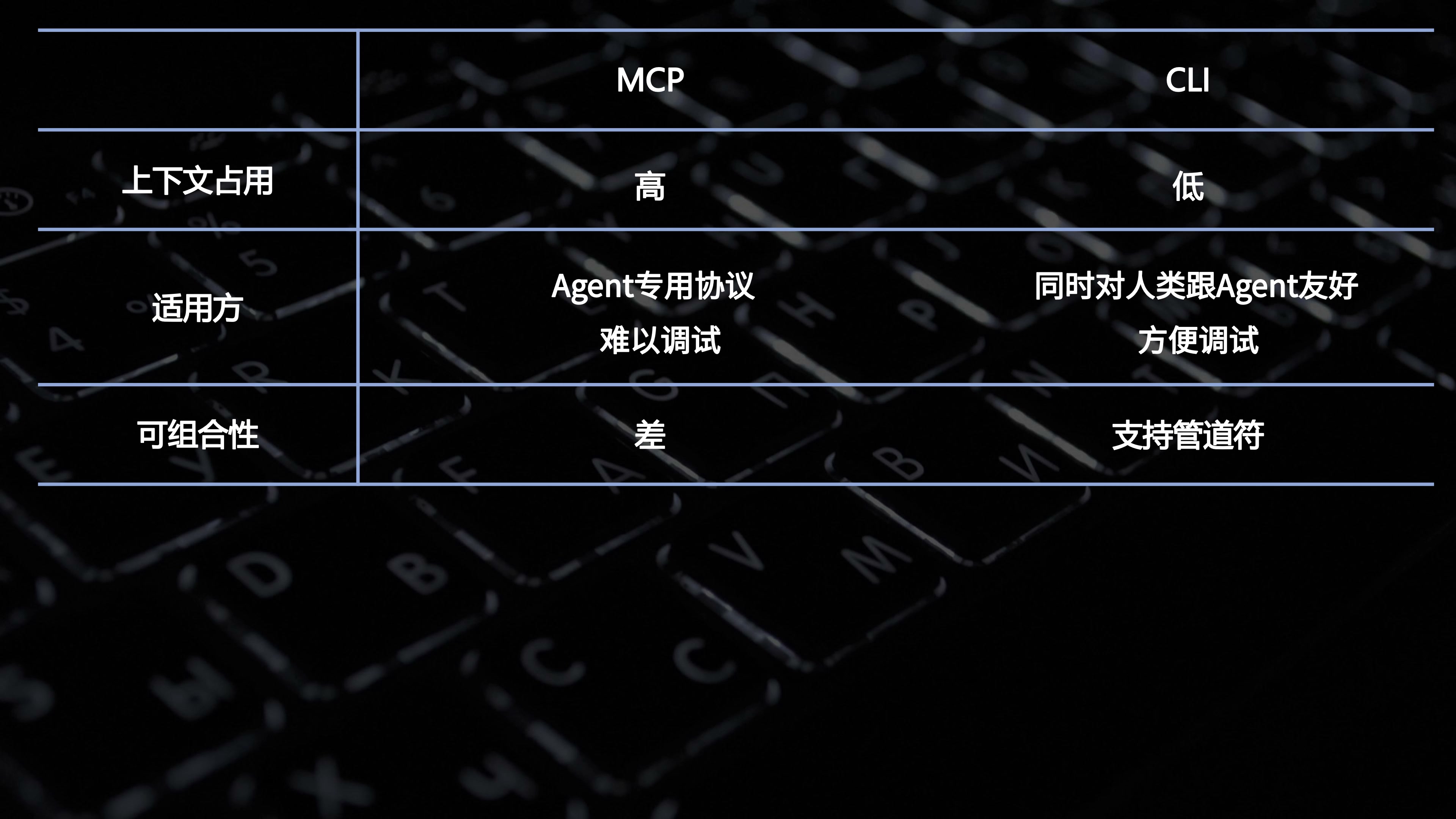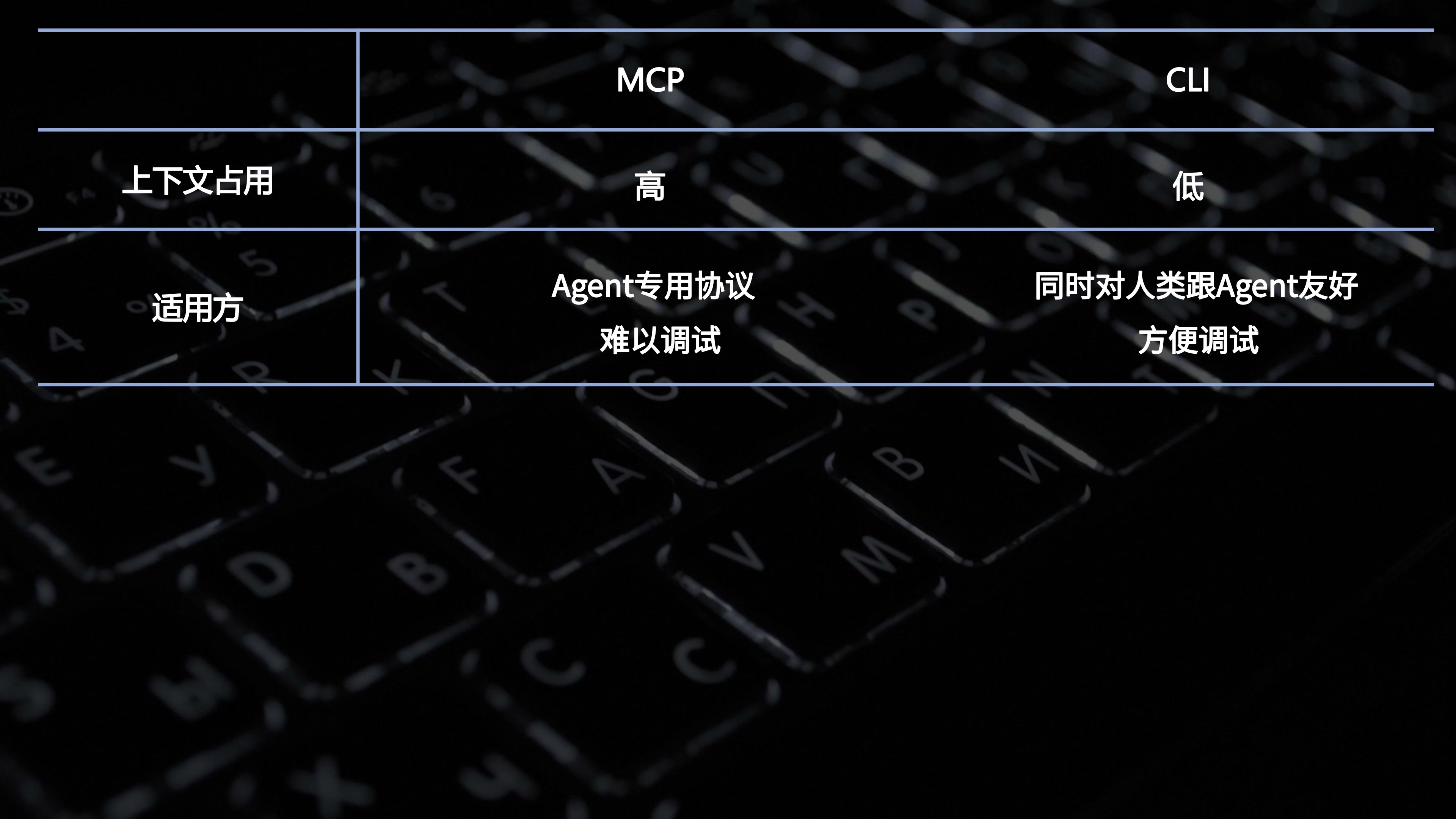 第二点,MCP更像是一个Agent的专用协议,而CLI是一个同时对Agent跟人类友好的工具。