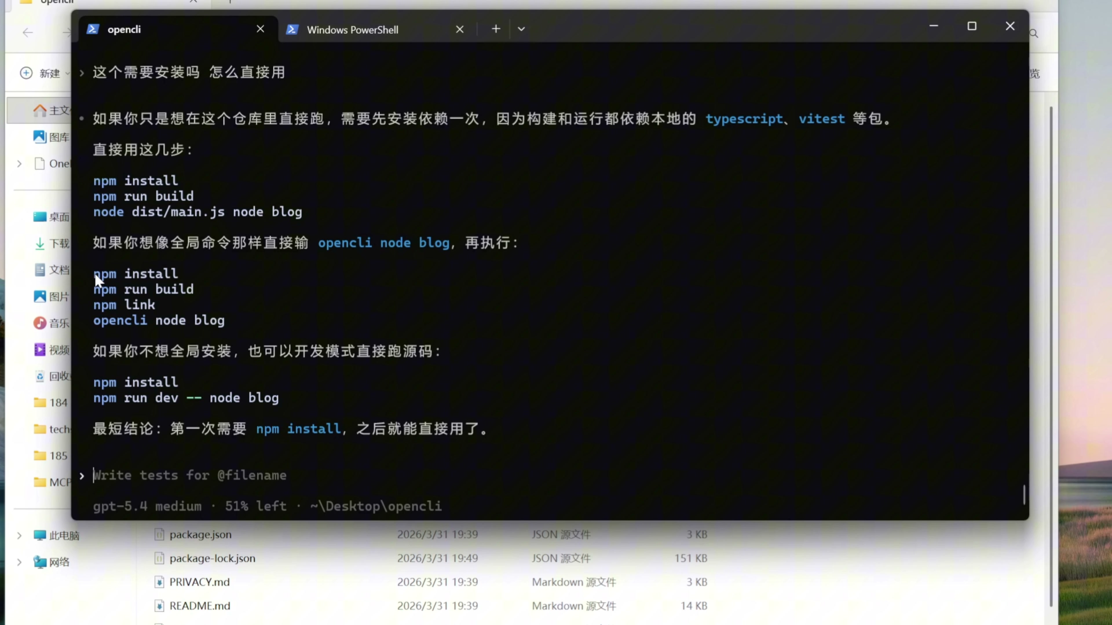 Codex通读了整个项目结构,学会到了如何创建新的命令。Codex为我们完成了开发,我们按照它的提示把它安装一下。