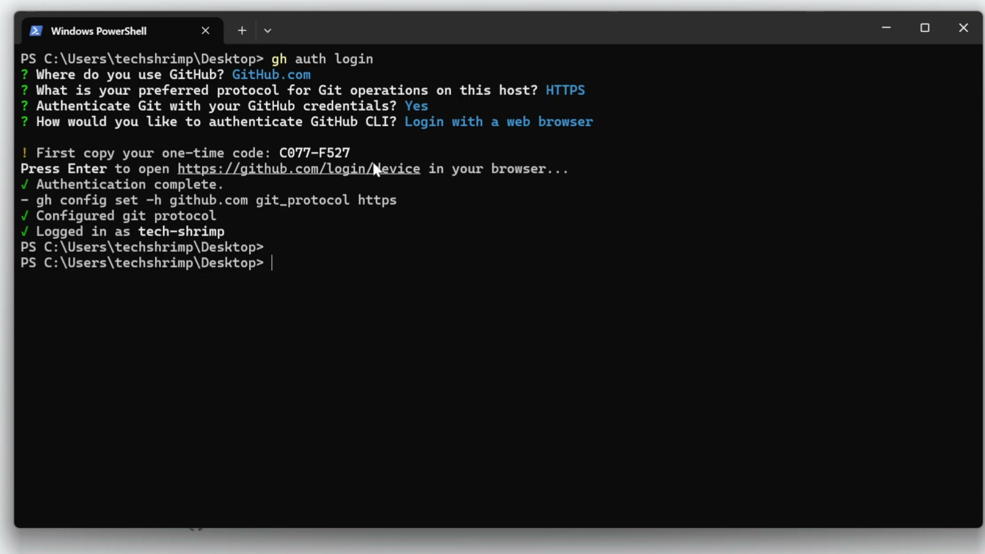 安装完成以后,打开命令行窗口,输入gh也就是GitHub的缩写,然后--help,查看一下有哪些命令可以使用。 一般我们使用CLI工具,第一步就是先登录,这里我们输入命令gh auth login。