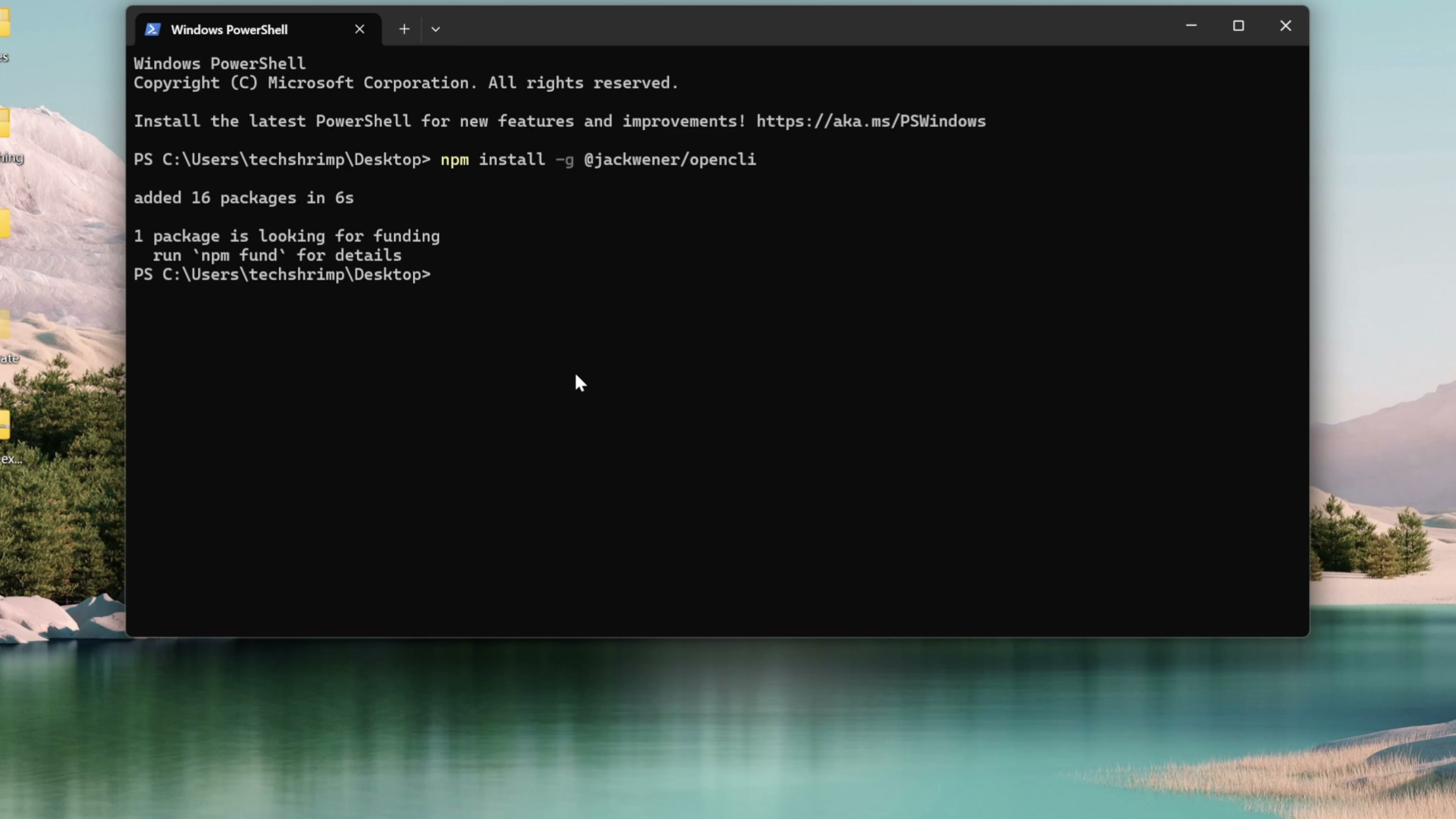 插件安装好以后,我们使用npm命令来安装OpenCLI。这里打开一个命令行窗口,把OpenCLI的安装命令粘贴过来,回车这样就安装完成了。