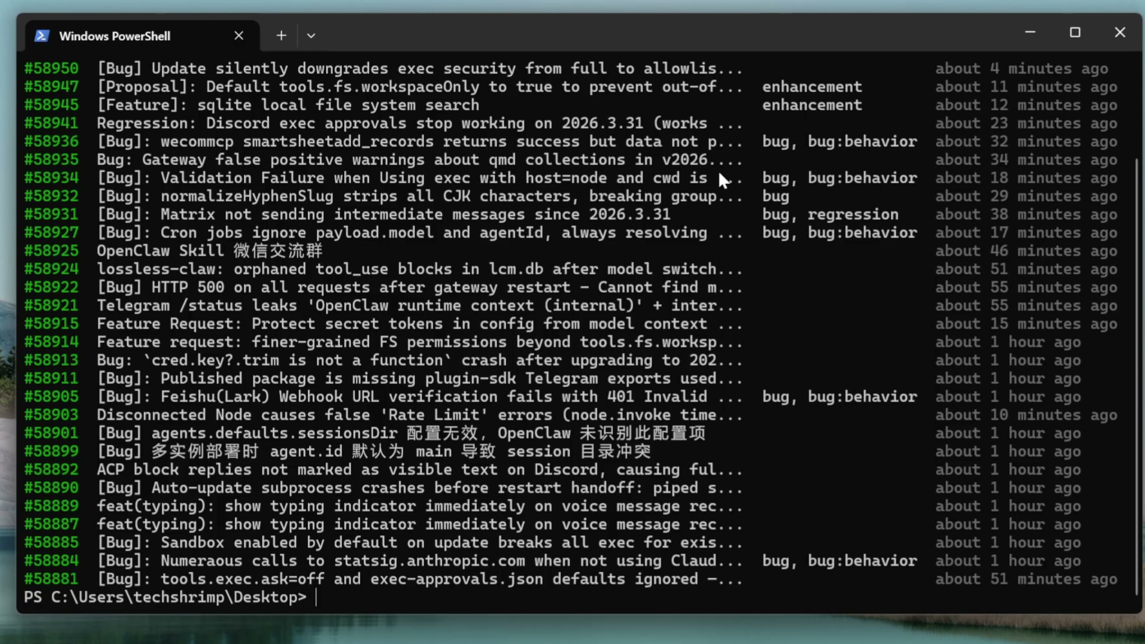 然后我们可以使用这个命令,查看一下Openclaw上面的issue列表。