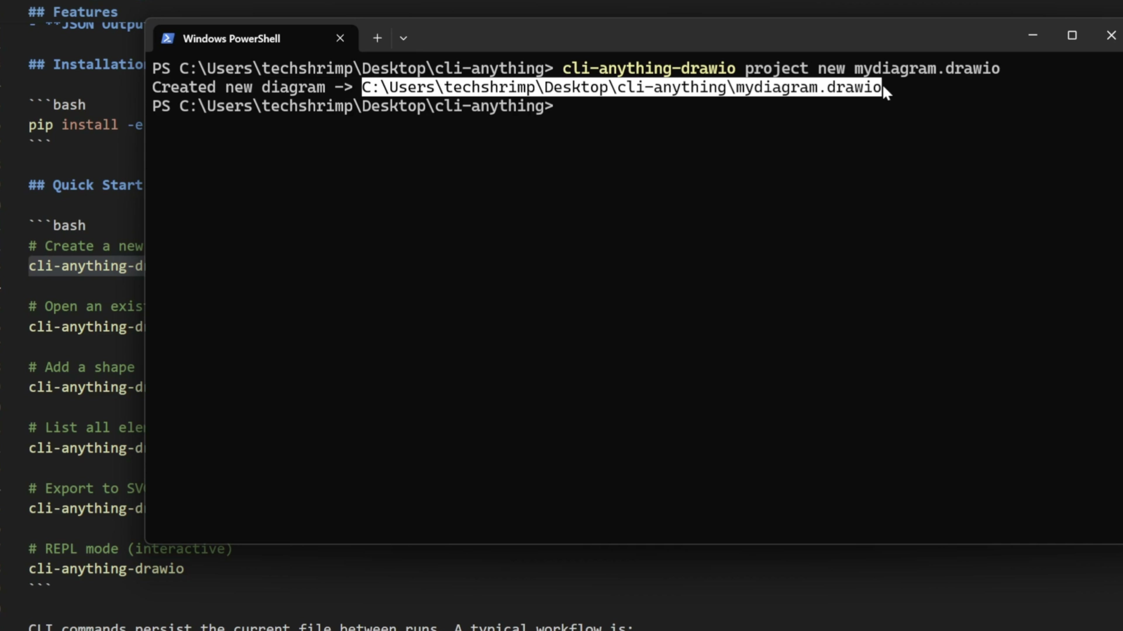比如第一个命令是创建一个draw.io的项目,这里项目文件就被创建出来了。