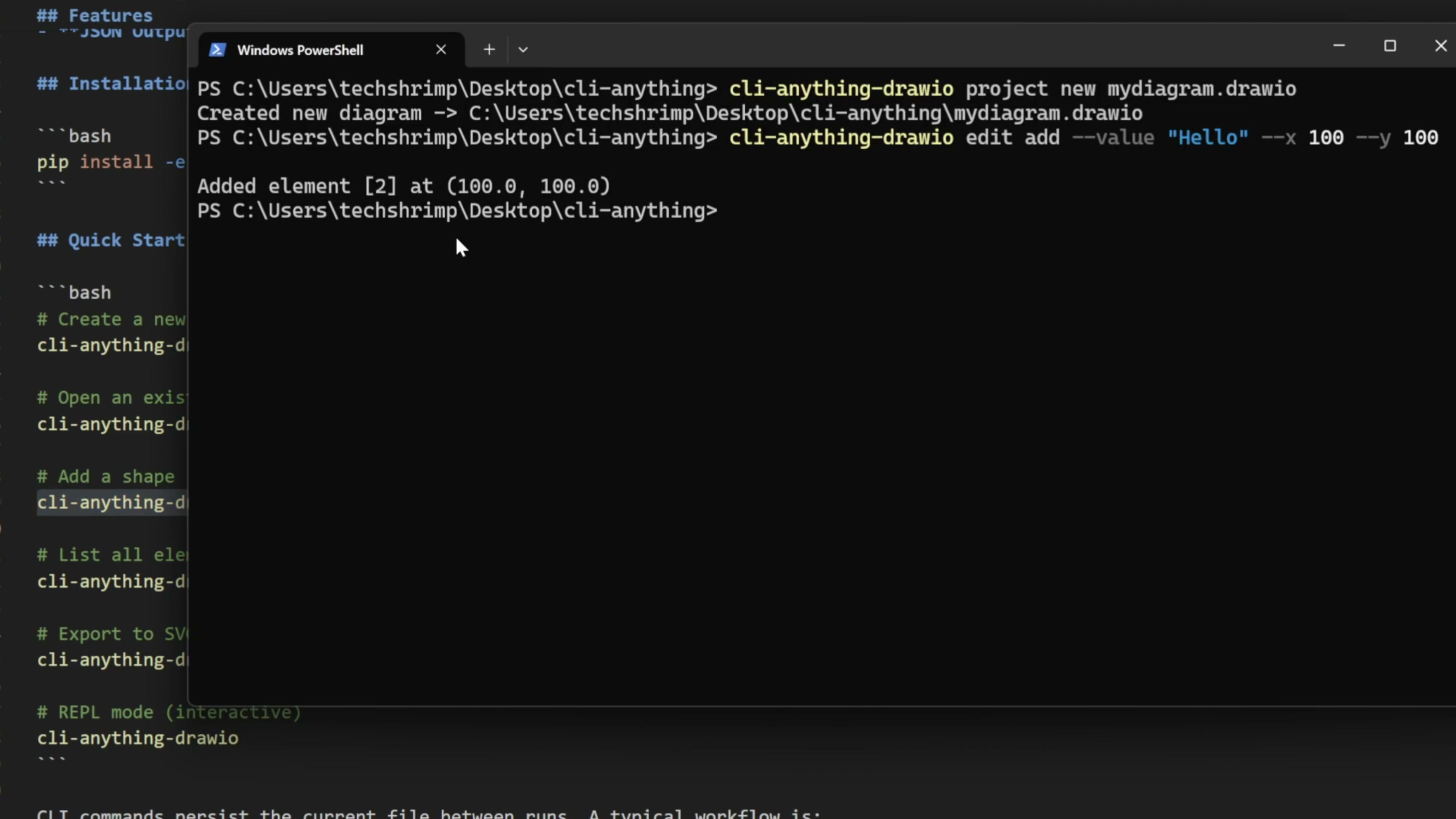 项目原理很简单,当我们运行命令的时候,其实就是运行了这些Python代码。Python代码可以按照draw.io的文件标准,来读写draw.io的工程文件,这样同一份文件可以被draw.io软件和CLI两种方式进行读写。