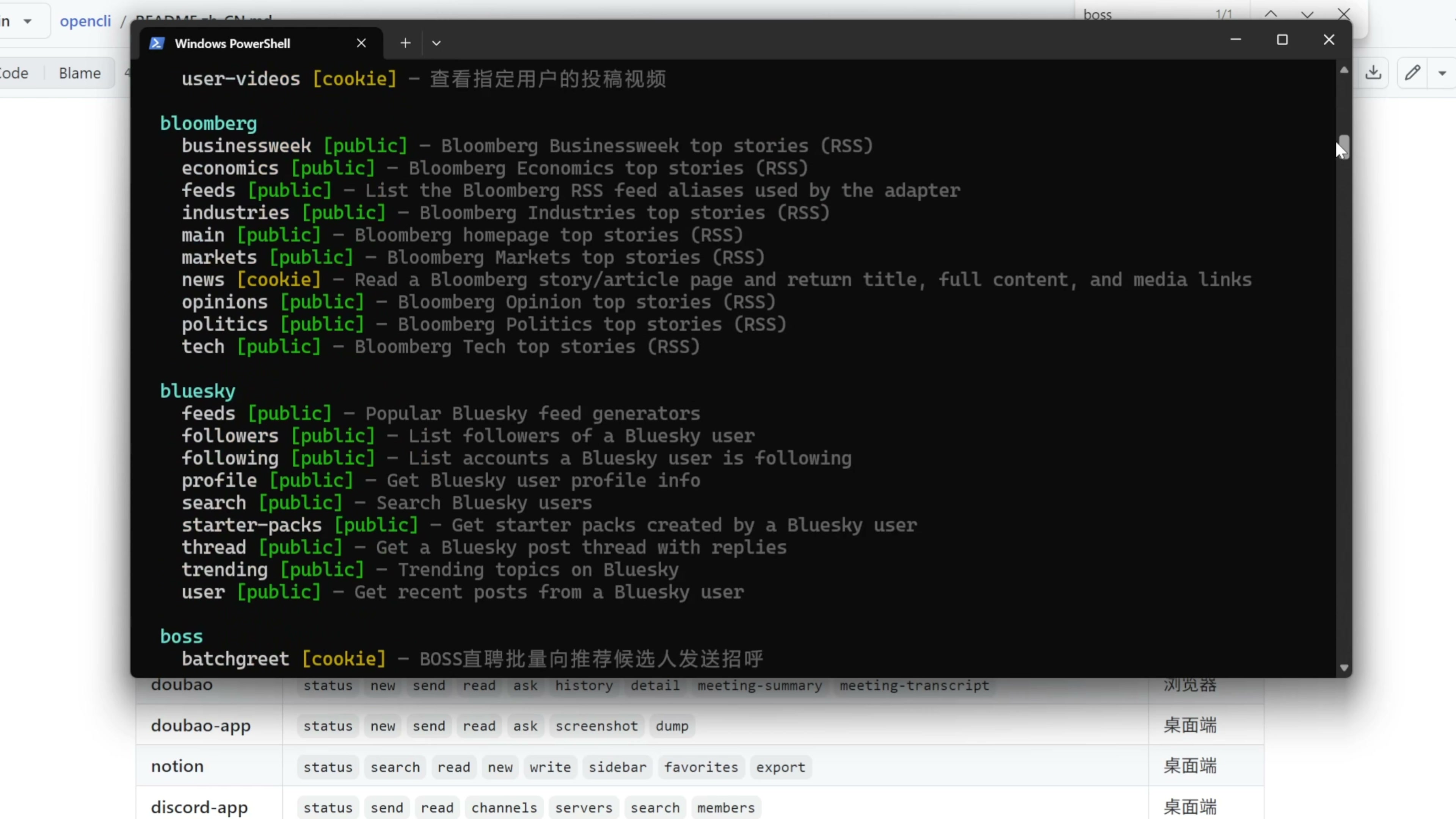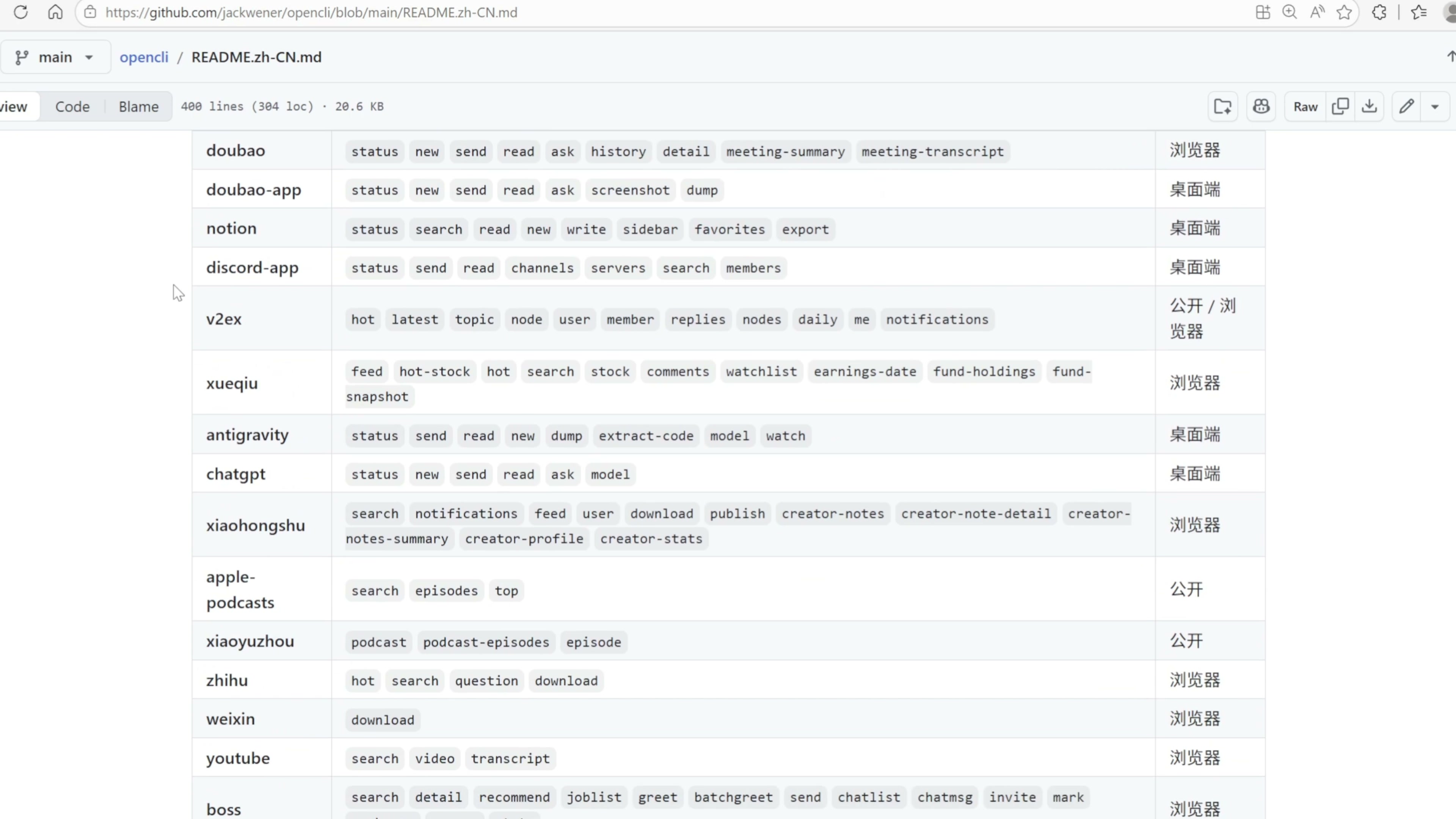 OpenCLI支持下面几十种网站还有工具,这里我就不一一介绍了。