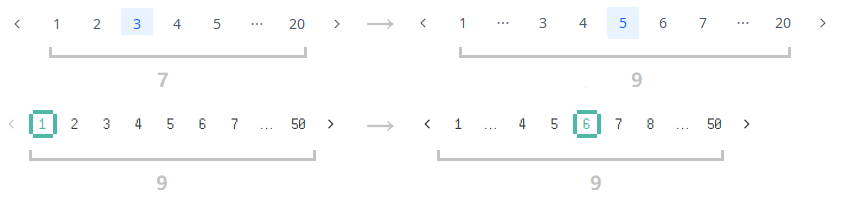此外,参考 Naive UI 的设计,分页器固定页面跳转按钮的个数,避免连续点击时,页码变化引起按钮数量改变导致的误操作。