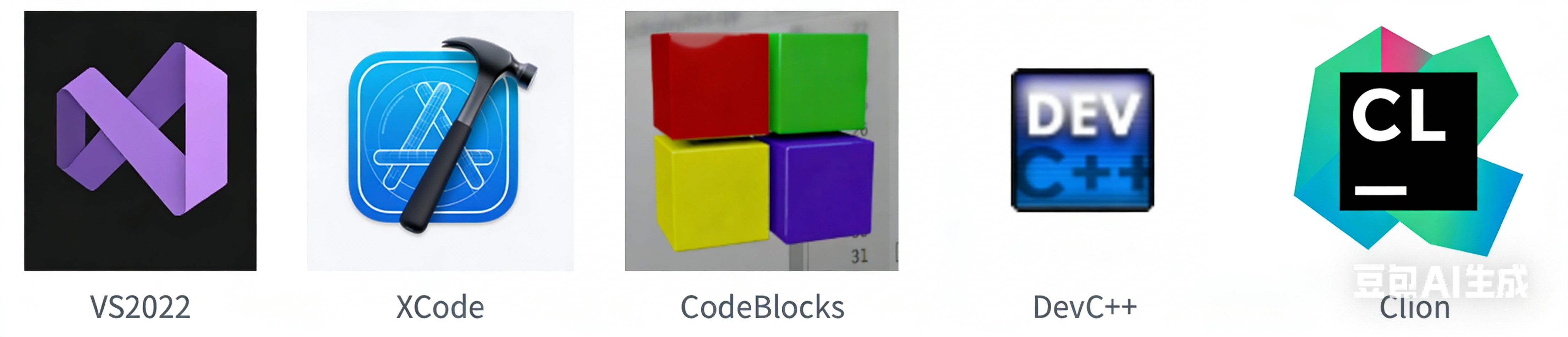 比如:msvc、clang、gcc就是⼀些常见的编译器,当然也有⼀些集成开发环境如:VS2022、VS2026 / XCode、CodeBlocks、DevC++、Clion等.