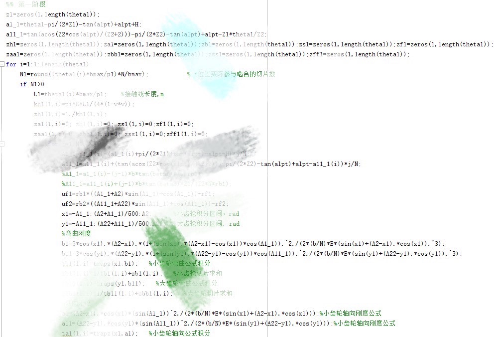 Matlab:利用势能法和切片法编写关于斜齿轮时变啮合刚度求解模型的Matlab程序,根据端面和轴面重合度的大小比较,分为了两种计算方法,以此作为计算,然后根据周期变化计算得到整个啮合过程的综合刚度啮合曲线,并得到拟合公式! 内含详细解答
