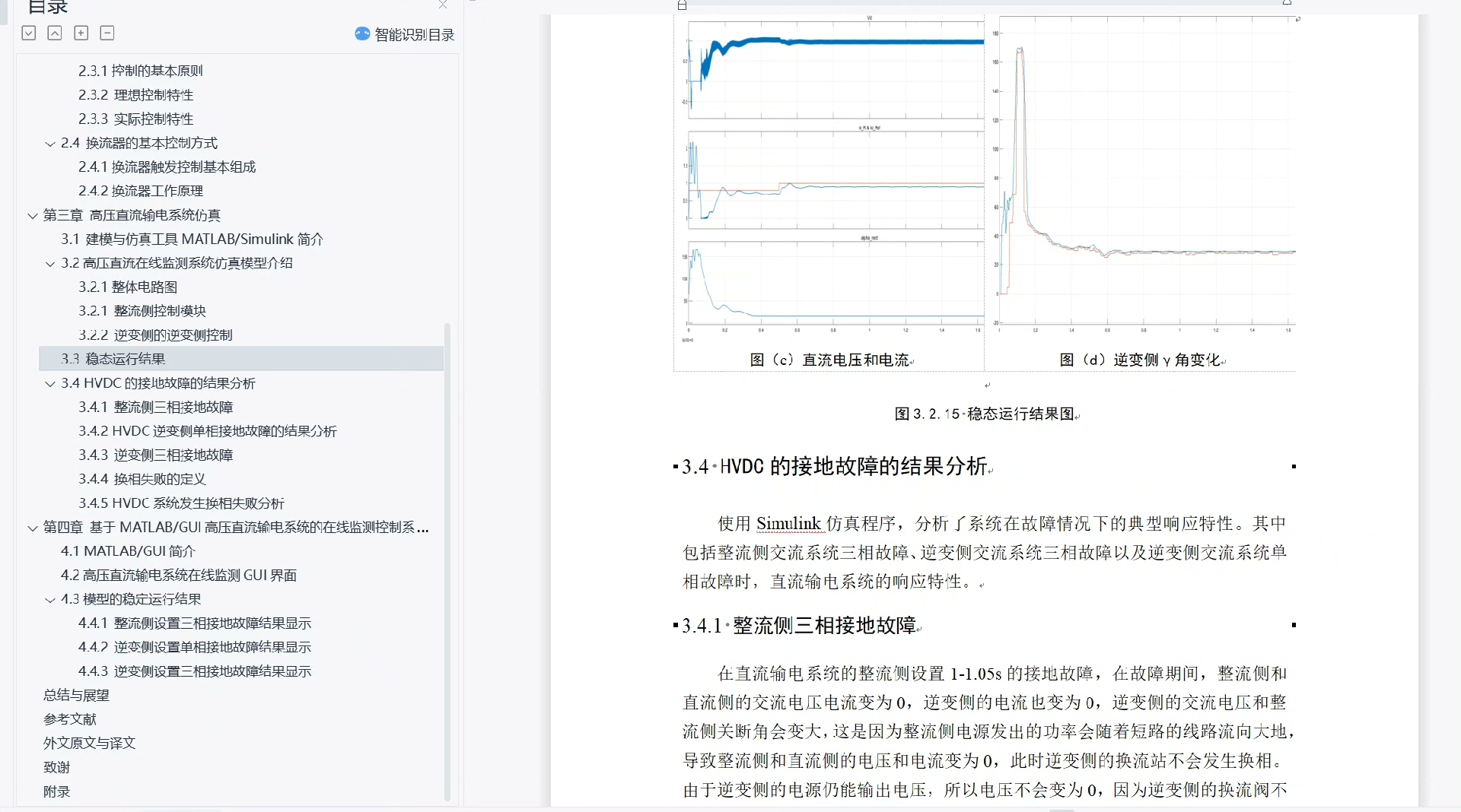 - 控制精度:统计触发角α、关断角γ的稳态波动范围,评估控制系统的调节精度。