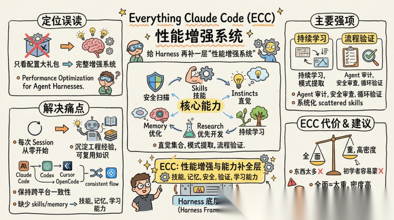 | Everything Claude Code | 增强层 | 用 skills、instincts、memory、安全、验证补全 Harness 能力 | 想把 AI workflow 长期工程化的人 |