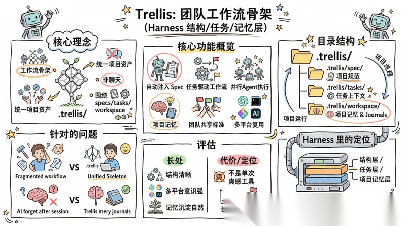 | Trellis | 结构层 | 用 specs / tasks / workspace 组织跨平台工作流和项目记忆 | 多工具团队、长期协作项目 |